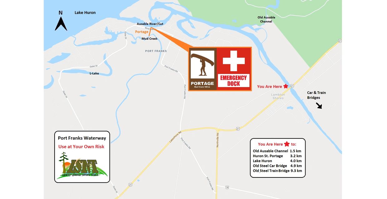 Explore the Ausable Cut, Ausable River, Old Ausable Channel, Mud Creek, 'L' Lake and Lake Huron. A 130m portage has been created along Huron Street in Port Franks for easy access to the Ausable Cut and Mud Creek.