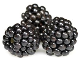 An edible soft fruit, consisting of a cluster of soft purple-black drupelets.