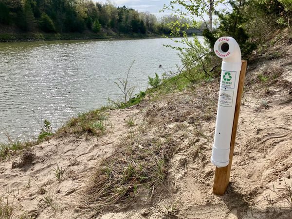 Encouraging fishers to dispose of their fishing line in a recycle container and not strewn along the shoreline where it can pose a real threat to birds and other wildlife. We promote this practice, a positive change for the environment!