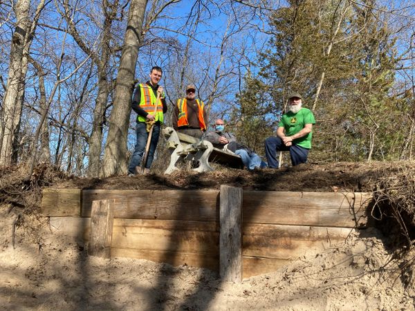 Built a retention wall in the Ausable River Cut Conservation Area to reduce the sand erosion on top of the sand dune along the trails.
