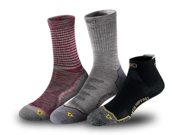 For hiking, a good pair of socks should be breathable, yet insulating, and water repelling. Wear a taller pair of socks than your shoes, hopefully ones with a little extra cushioning for your foot. Investing in a good pair of socks can even protect your feet from blisters!